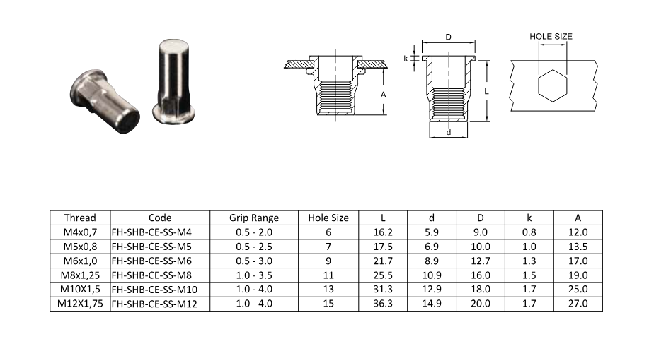 Nýtovací matice semi-hexagonální uzavřená s plochou hlavou